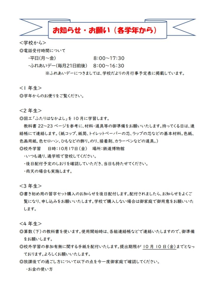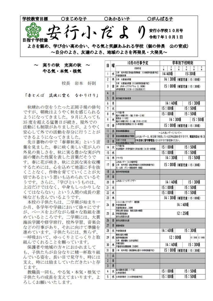 学校だより 10月号
