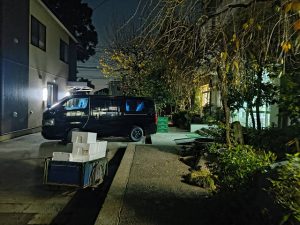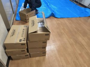 玄関にはたくさんの箱が積みあがっています。