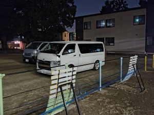夜の7時、校庭に車が止まりました。