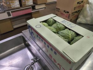 約800人分の焼きそばの材料キャベツです。大量です!