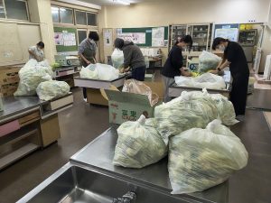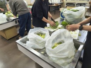 家庭科室ではキャベツが細かく切られていきます。