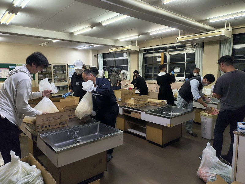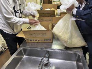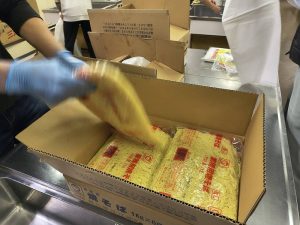 おやじの会総出でめんをほぐしています。