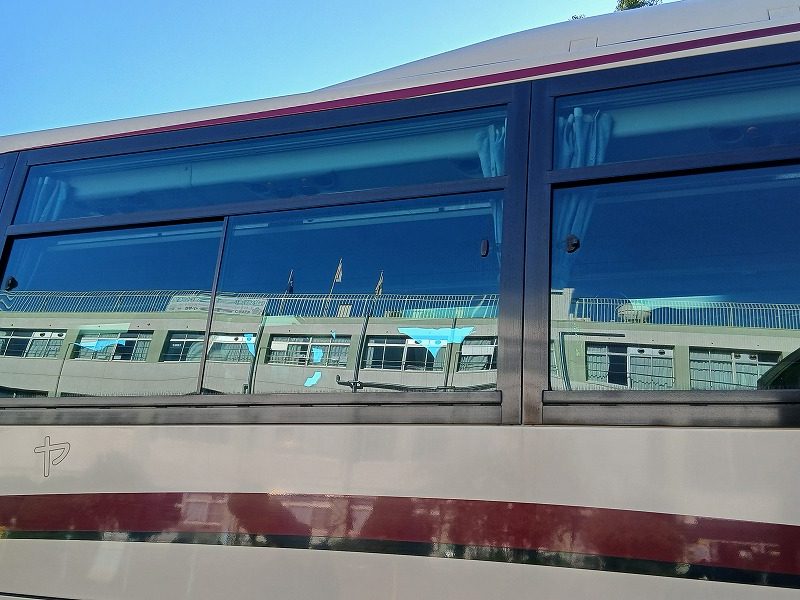バスに乗り込みます。たくさんの荷物を積み込みました。