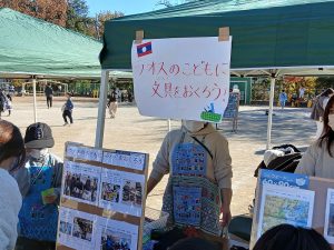 ここはラオスの小学校を支援するフリーマーケットです。