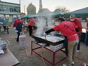 保護者のおまつりボランティア、先生たちも焼きそばを焼きました。