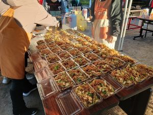 手際よく焼きそばがパックづめされていきます。開始の10時まえにどれだけ