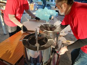 少し明るくなって6時30分、いよいよ焼きそば調理が始まります。