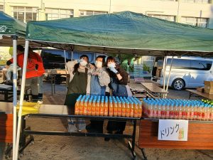 校庭の場所に机といすを運んでお店の準備です。