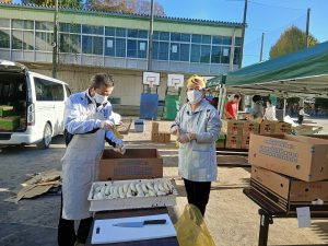 石渡さん、PTA執行部のメンバーの皆さんが前日のキャベツ切りを行ってくれ