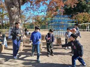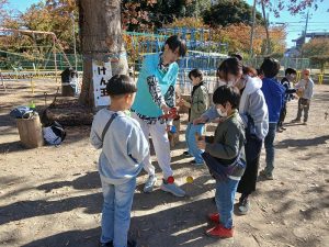 アトラクションが終わってからはけん玉教室がケヤキの側で開かれました。