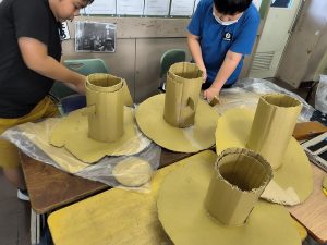 もとになる帽子を組み立てていきました。帽子の高さを考えて、つばの形も自由に