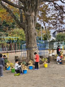 理科では木を決めて、1年間その木を継続して観察しています。その木の葉も飾り