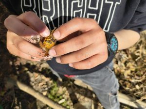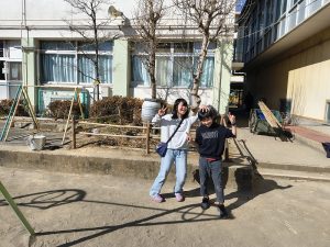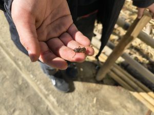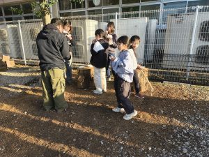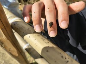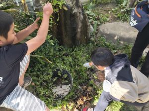 作業をしていると昨日活動した子が池の様子を見に来ていました。作業を手伝ってくれました。