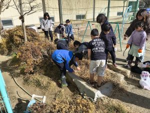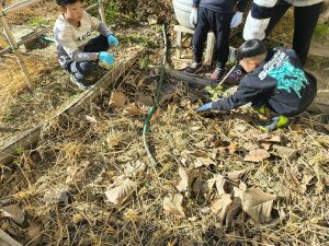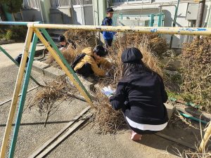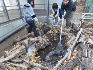 1月31日(土)は学校にある池、ミニ田んぼ、ビオトープの手入れをしました。