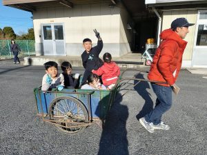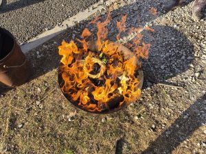 作業を終えて「どんど焼き」をしました。12月29日に作ったしめ縄をどんど焼きにしました。
