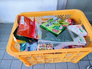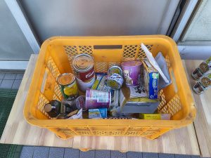 朝の昇降口でフードドライブ協力を見ているので、3日目がたくさん集まりました。