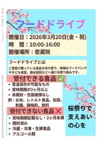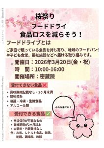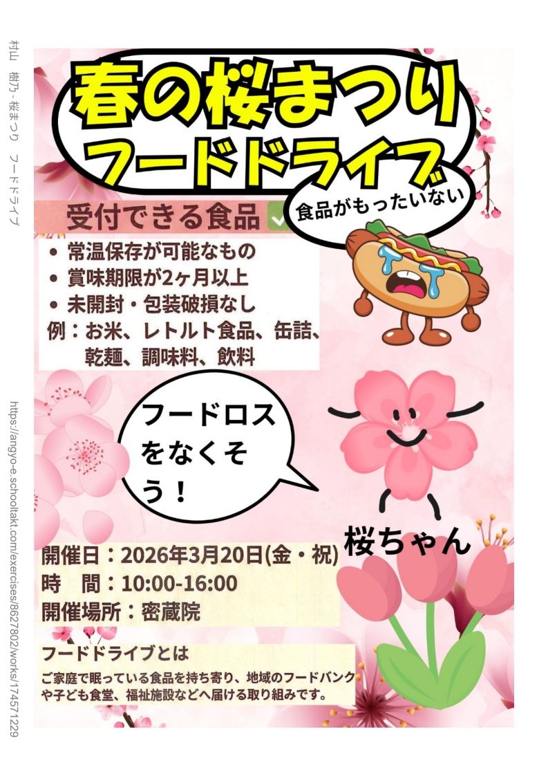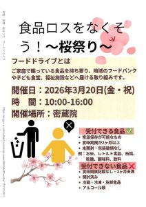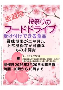 3月20日(金)には密蔵院の桜まつりでフードドライブが開かれます。
