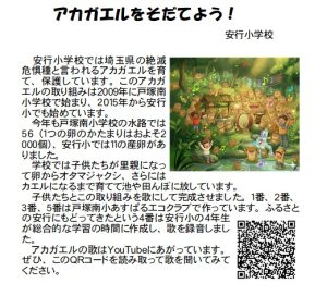 あわせて安行小のアカガエルの取組みの紹介のチラシも配ることにしました。